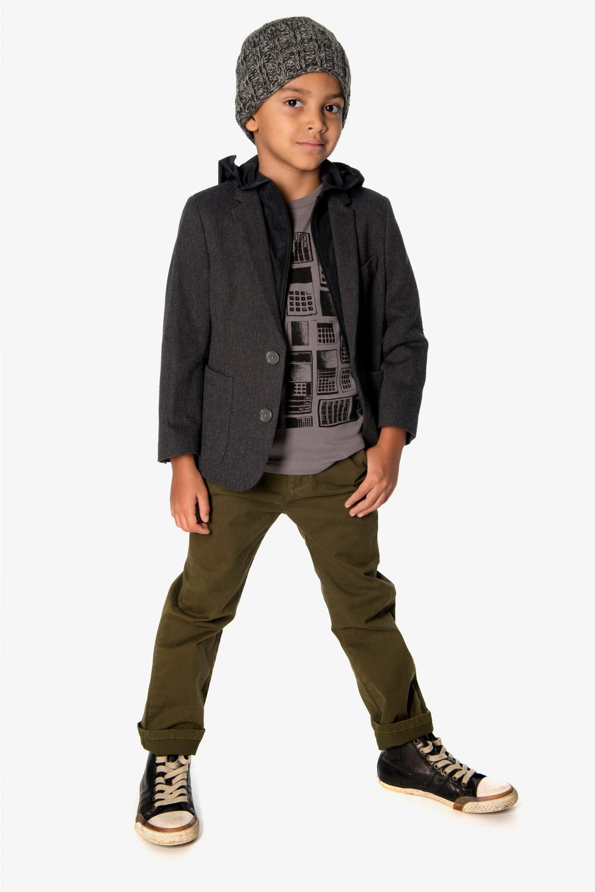 , with two front pockets, button and zipper closure, adjustable waistband and rear pockets. 98% cotton, 2% spandex, machine wash.
