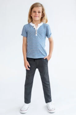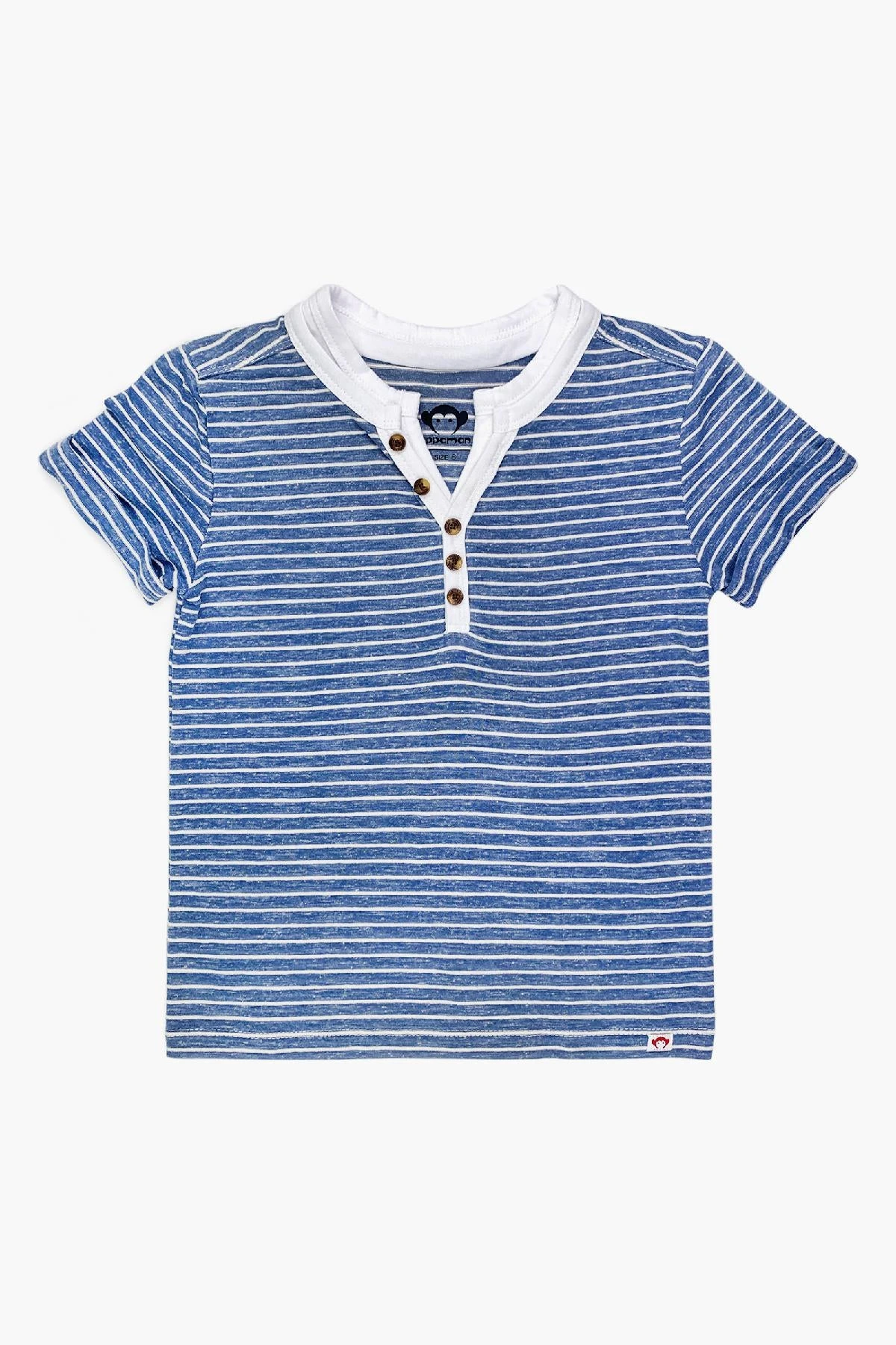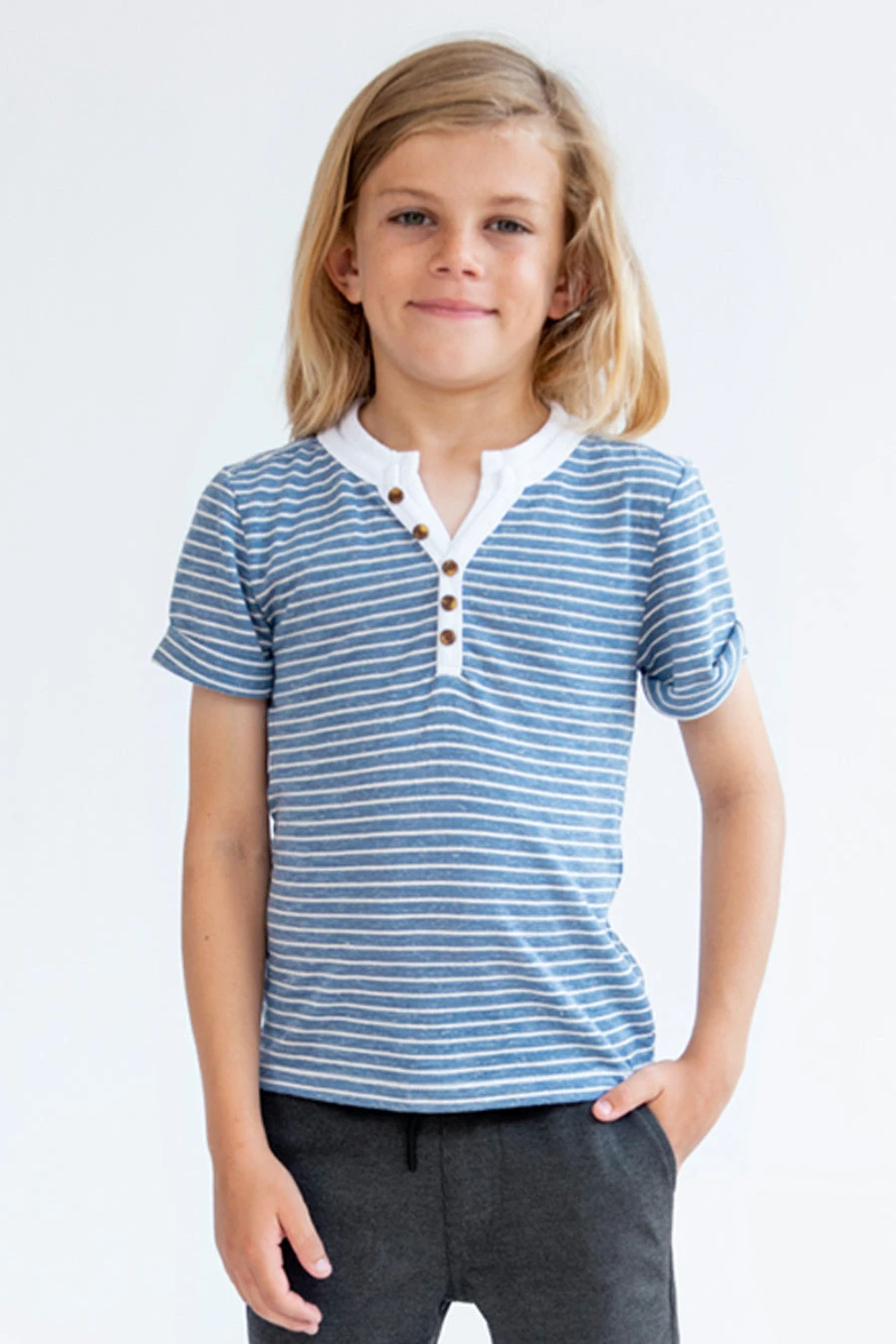 henley with buttons on the front. The soft fabric offers a comfy wear for back toÂ
