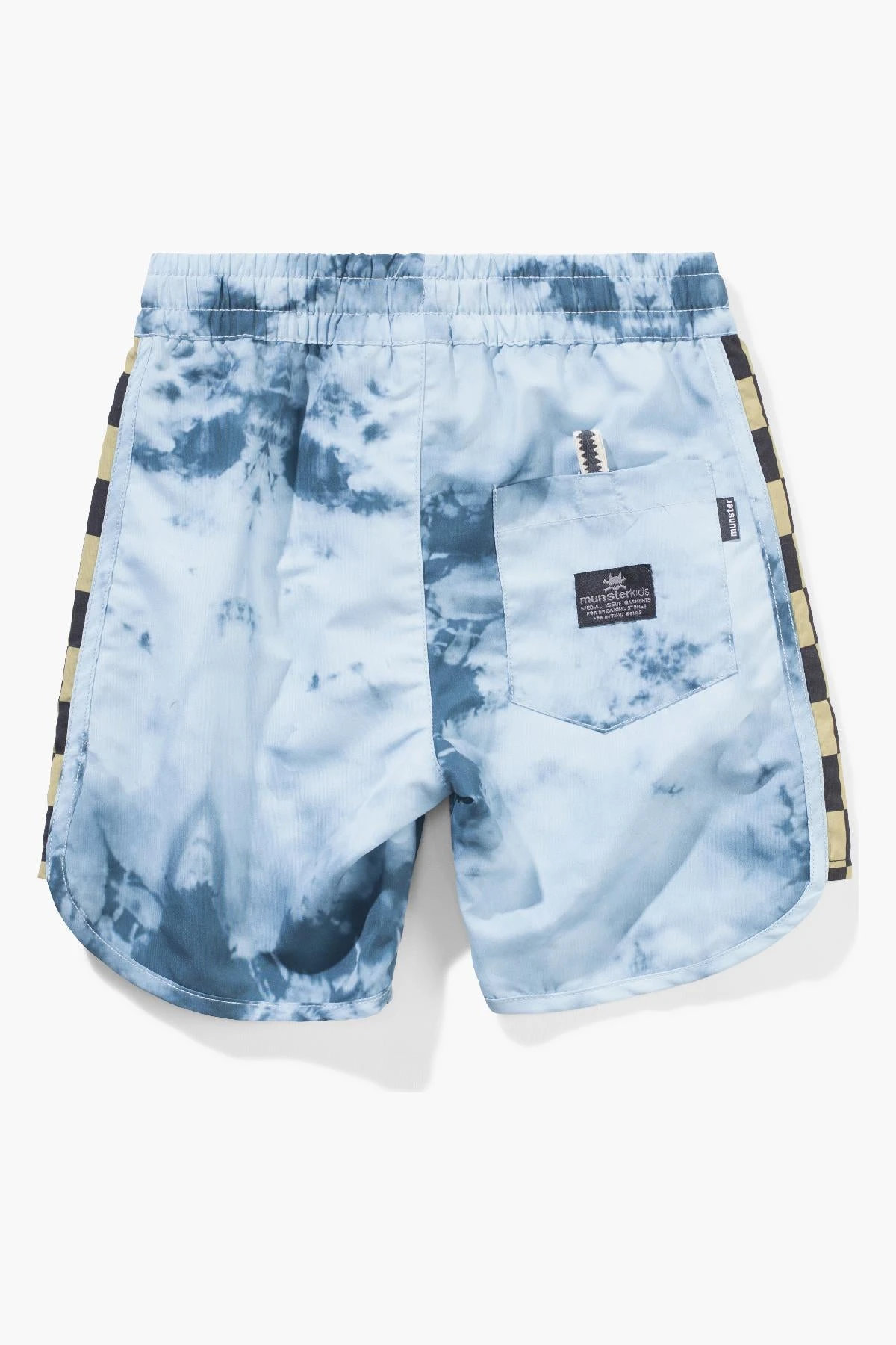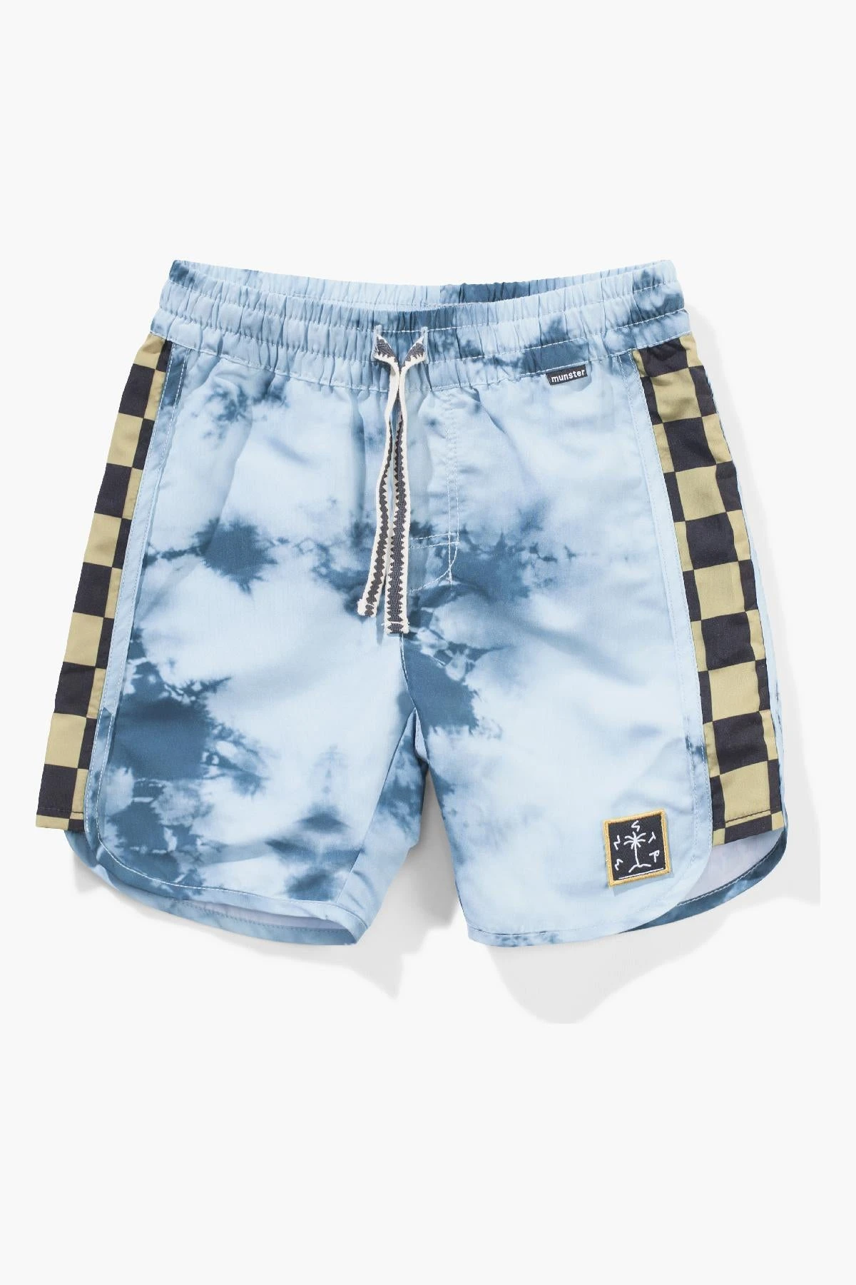 which features a checker print along the sides, a rear pocket and an elasticized and drawstring waist. The