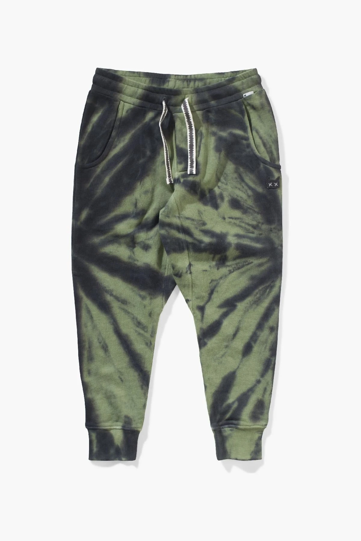 green tie dye print that will be sure to catch anyone’s eye. The elastic waist and drawstrings provide the ultimate comfort while the tapered leg yields