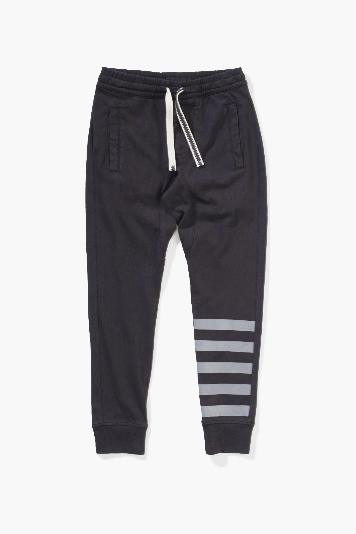 feature five black stripes along the leg, has both front and back pockets for