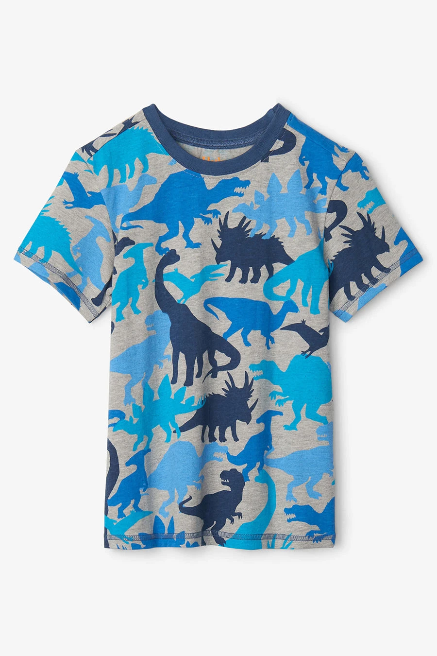 featuring an all over dinosaur print in different shades of blue. This t-shirt will keep your little one comfortable and