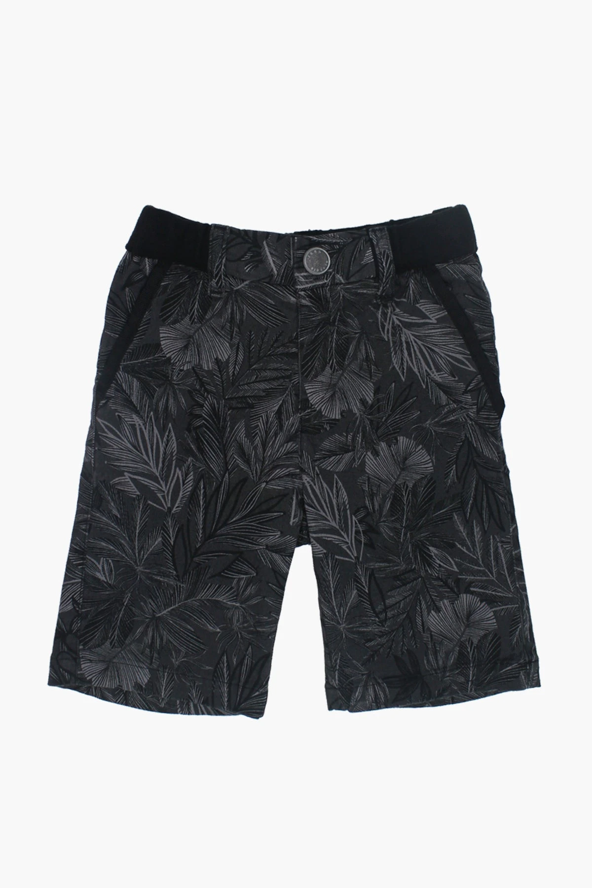featuring an allover palm leaf print, ribbon detailing at the pockets, and an adjustable elastic waistband. 89% cotton, 10% polyester, 1% elastane, machine wash.