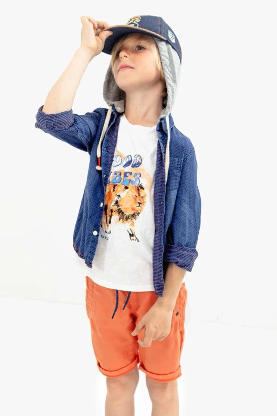 . Features an elastic waist with drawstring, two front pockets and two back pockets. 89% cotton, 10% polyester, 1% elastane, machine wash.
