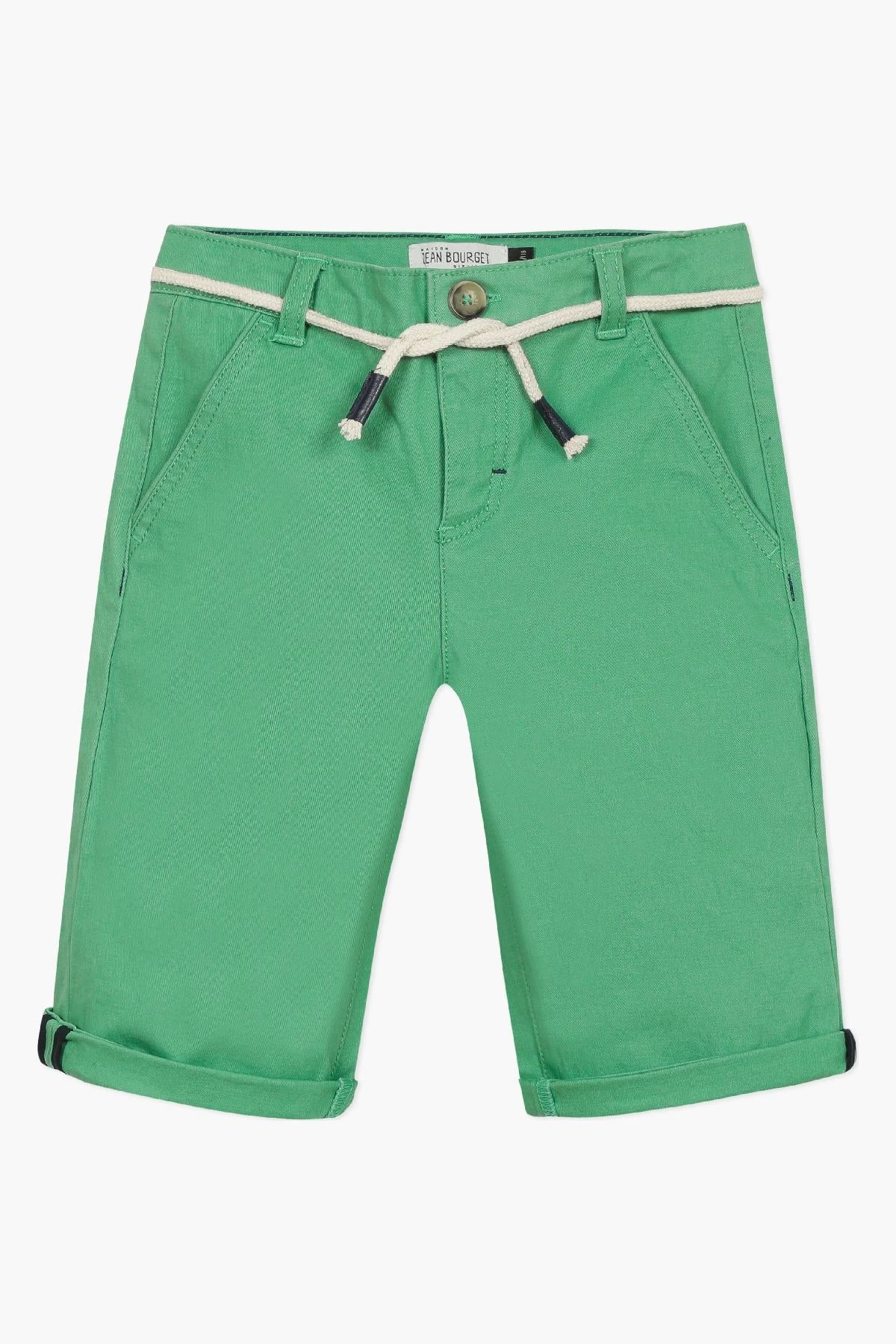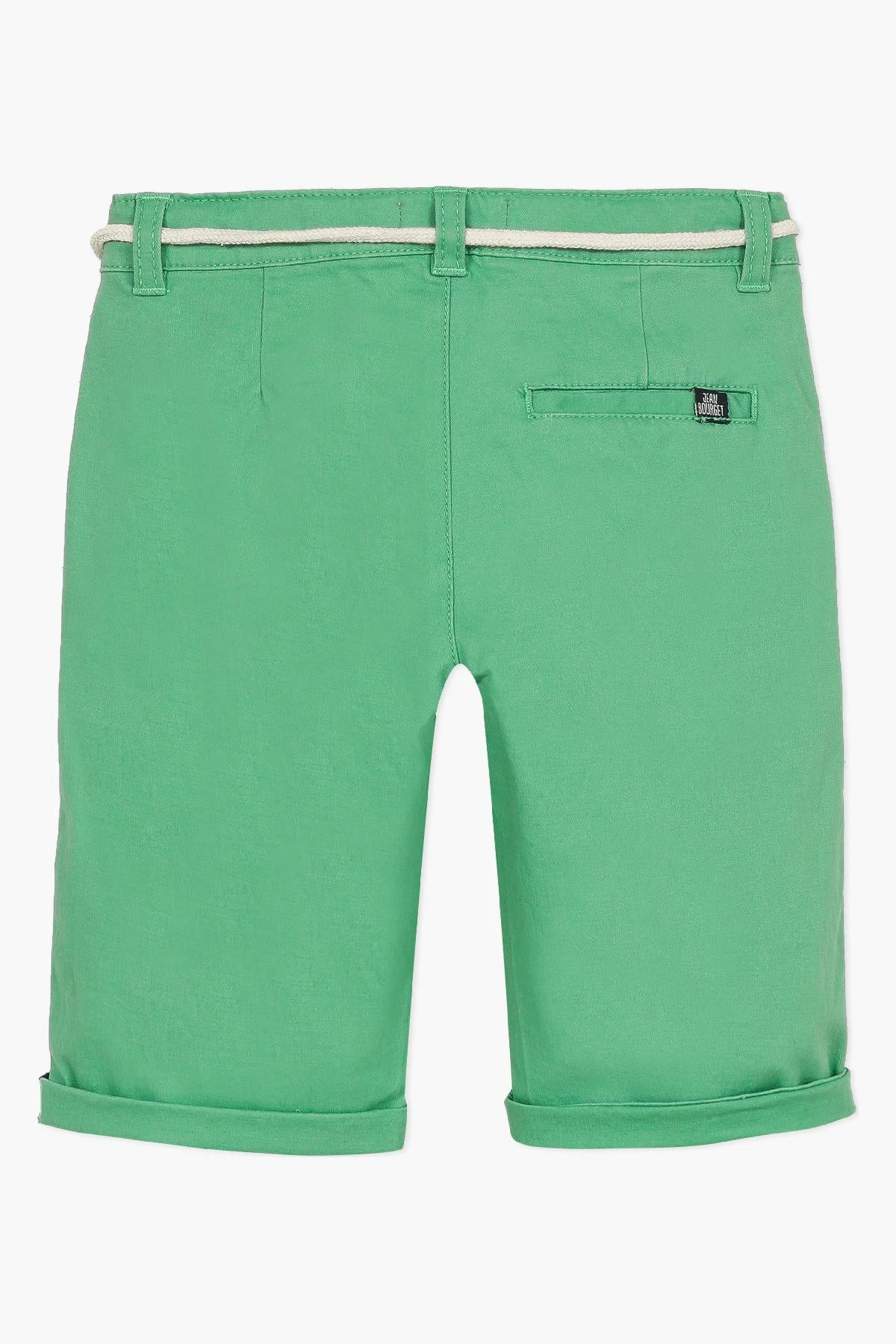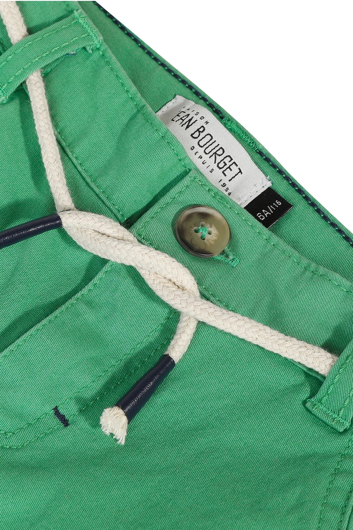 in a vibrant green color. Features two front pockets and a removable rope belt. 98% cotton, 2% elastane, machine wash.