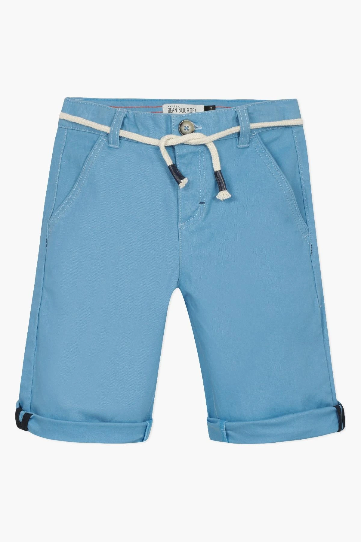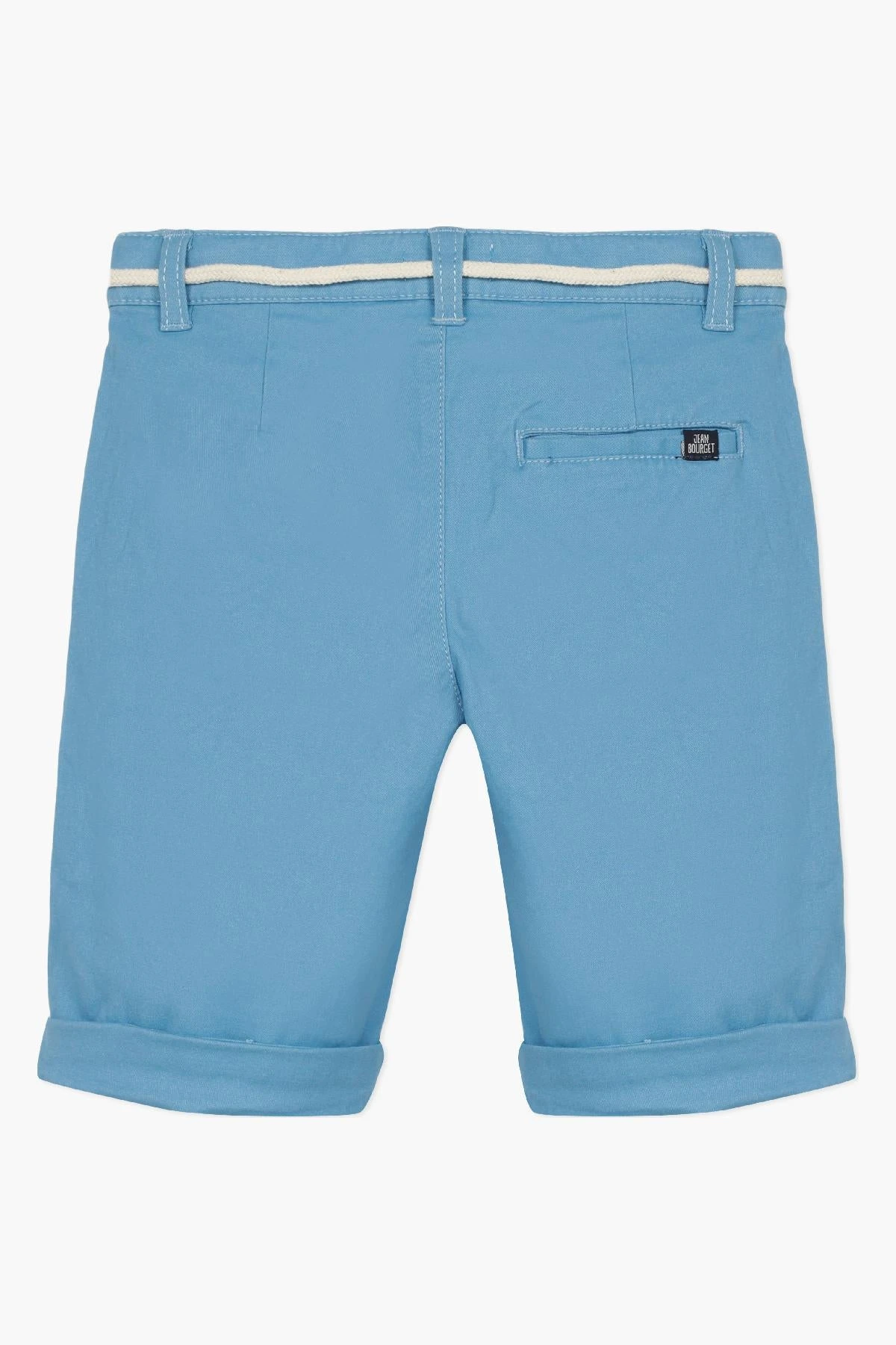 in a vibrant ocean blue color. Features two front pockets and a removable tie belt. 98% cotton, 2% elastane, machine wash.