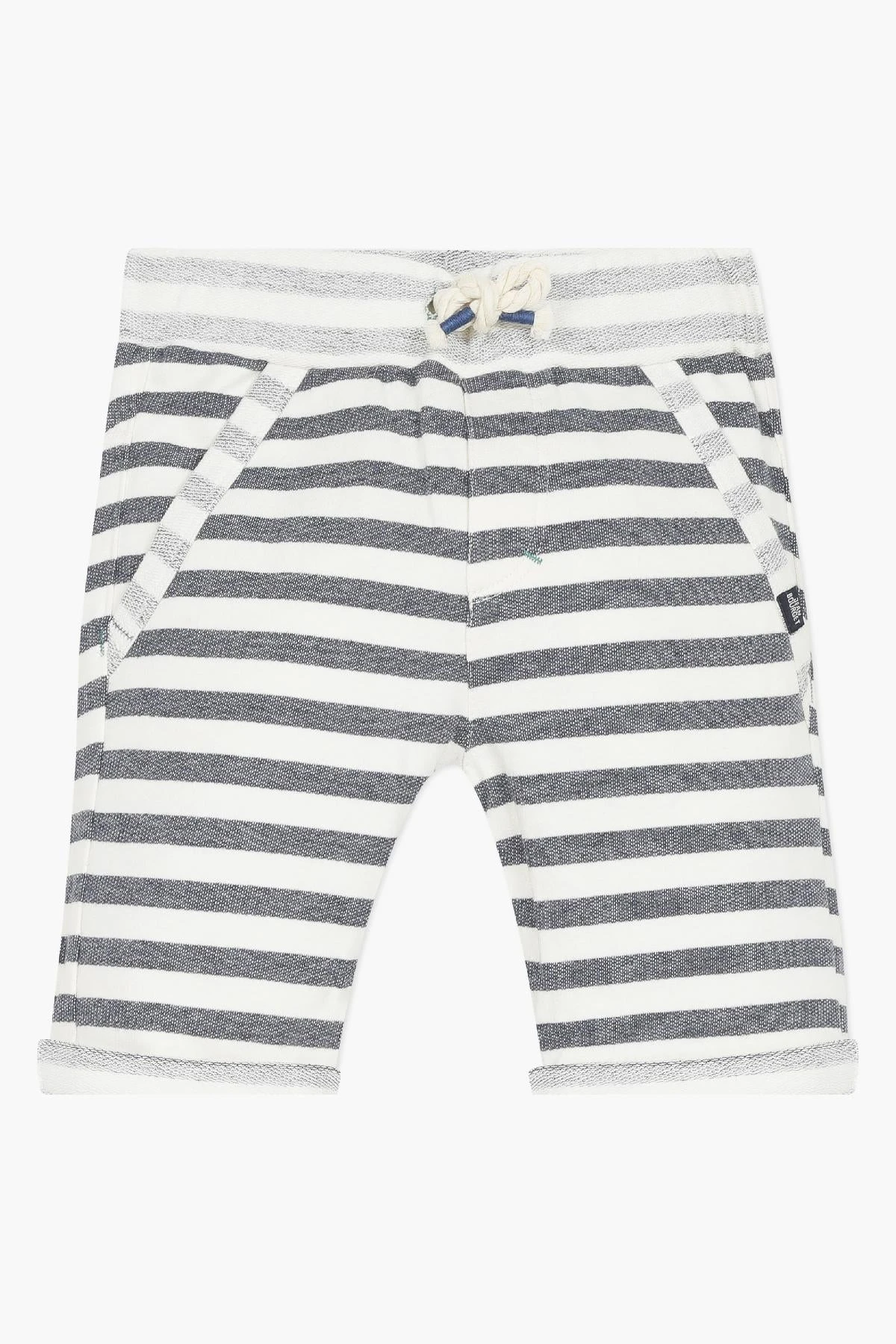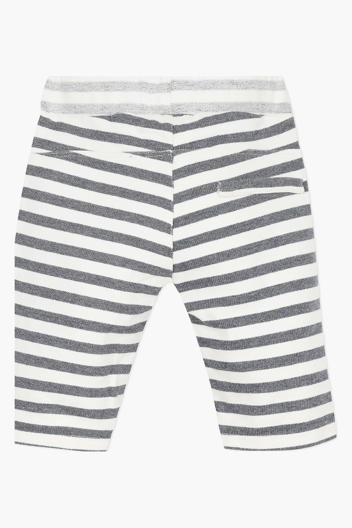 Indigo blue and white Striped Knit Bermuda