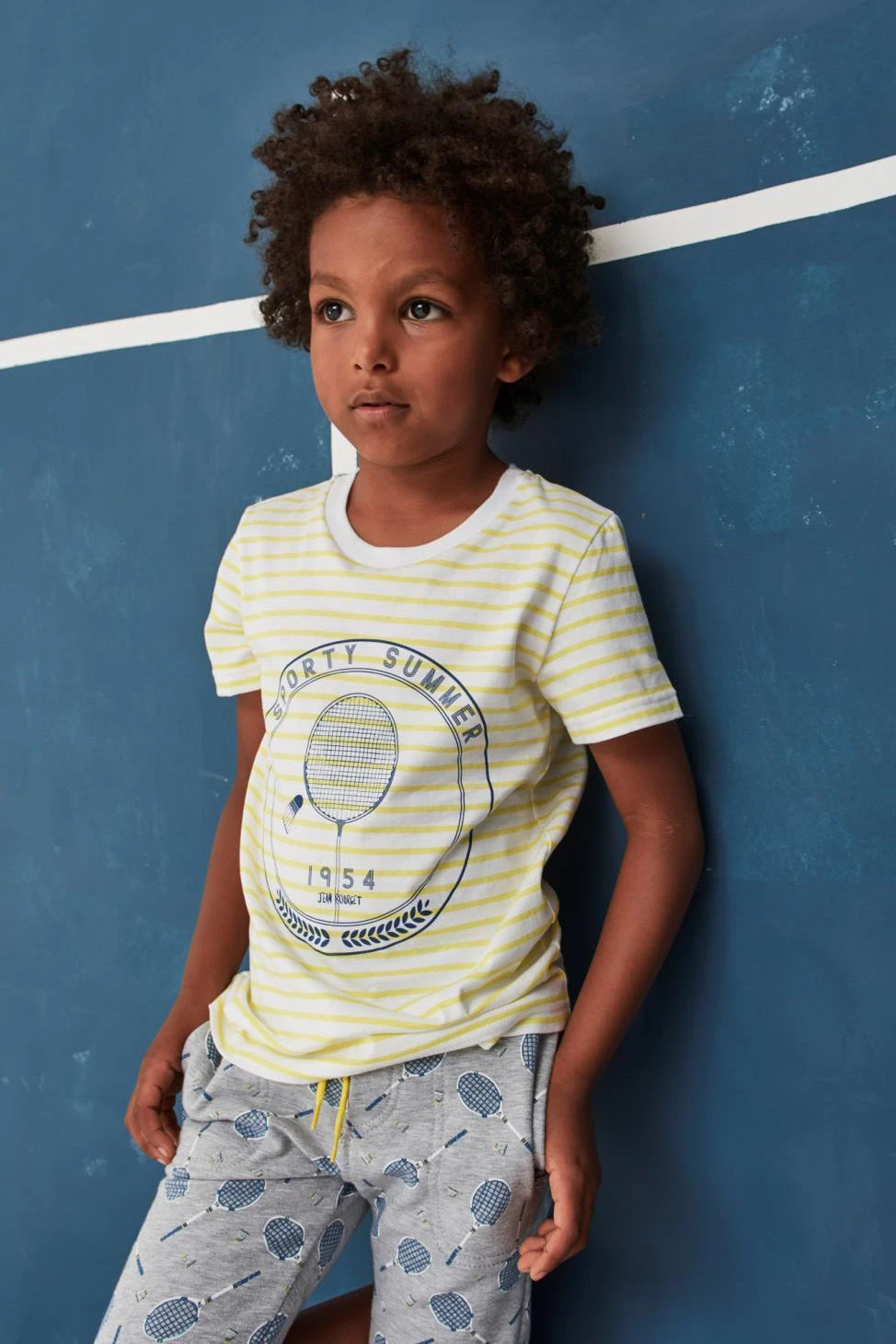 . Features an elastic waist and drawstring tie. 95% cotton, 5% elastane, machine wash cold.