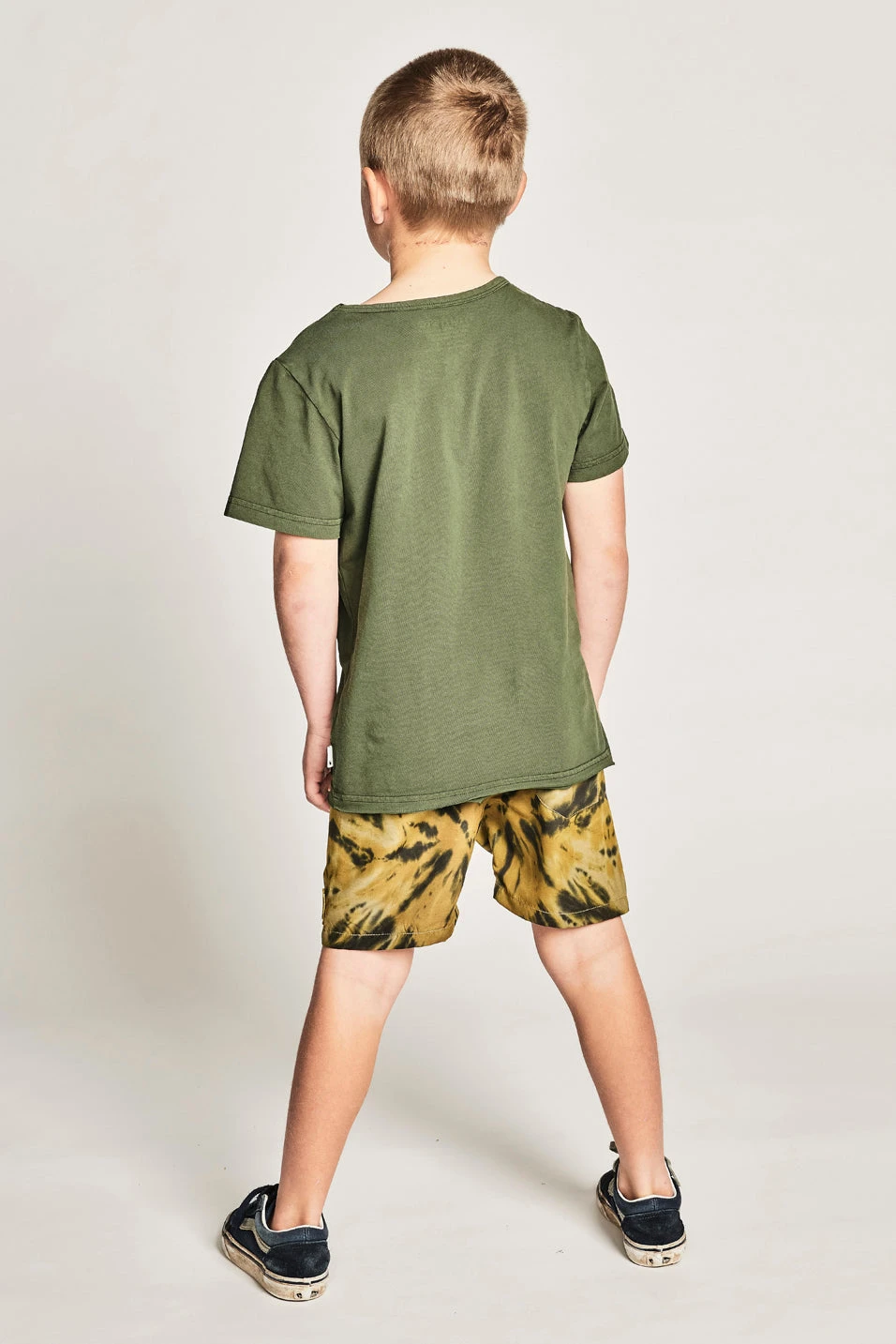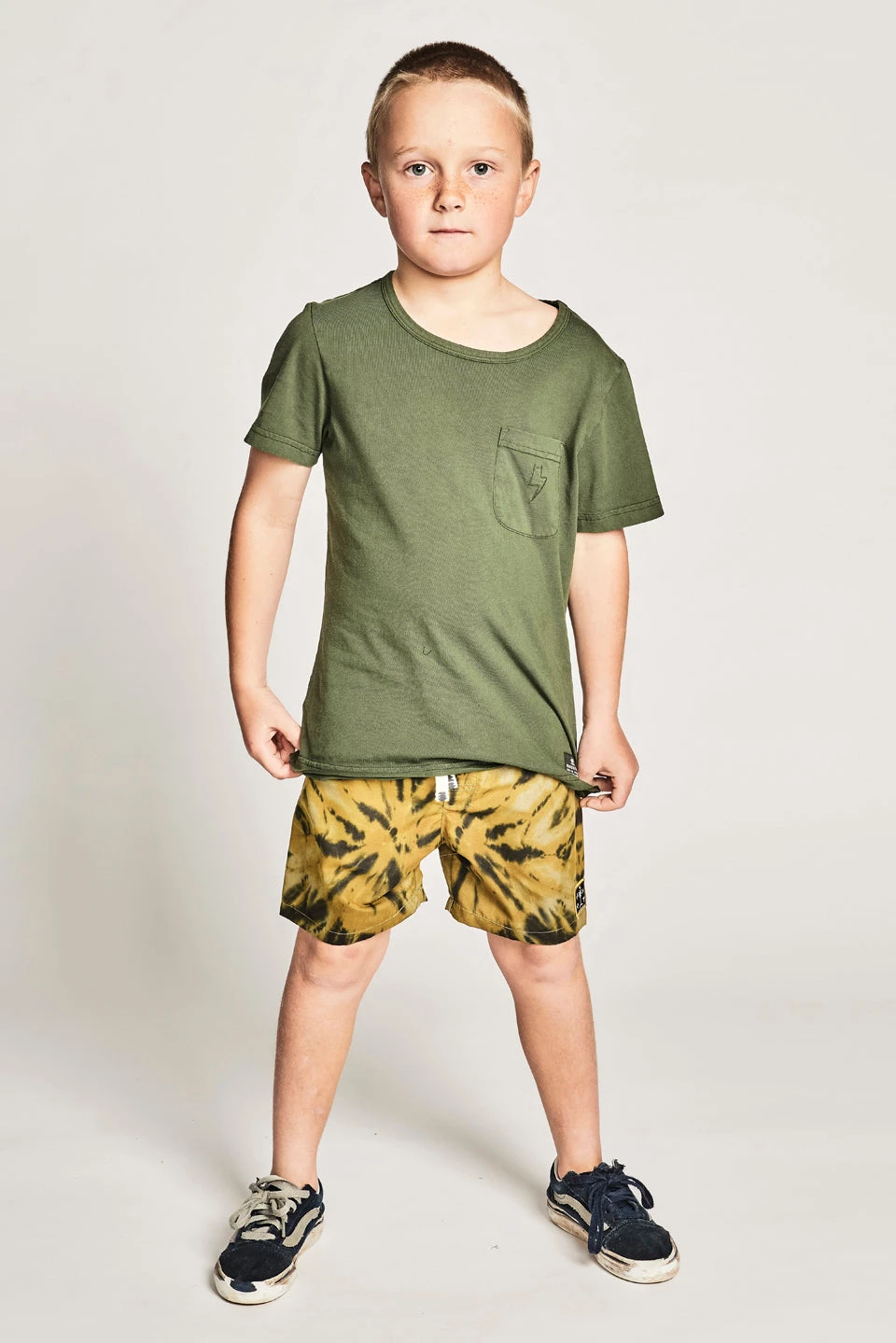 with a rear pocket and an elasticized and drawstring waist. Perfect for in and out of the water. The cool tie dye print adds extra