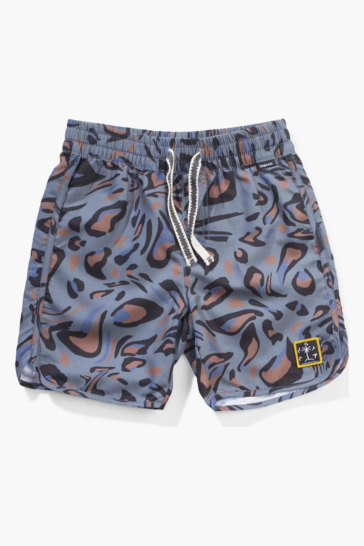 , both in and out of the water. Featuring a fun warped animal print and a drawstring waist to ensure the perfect fit. Made with pockets on the sides and on the back to collect little treasures. Pair with favorite