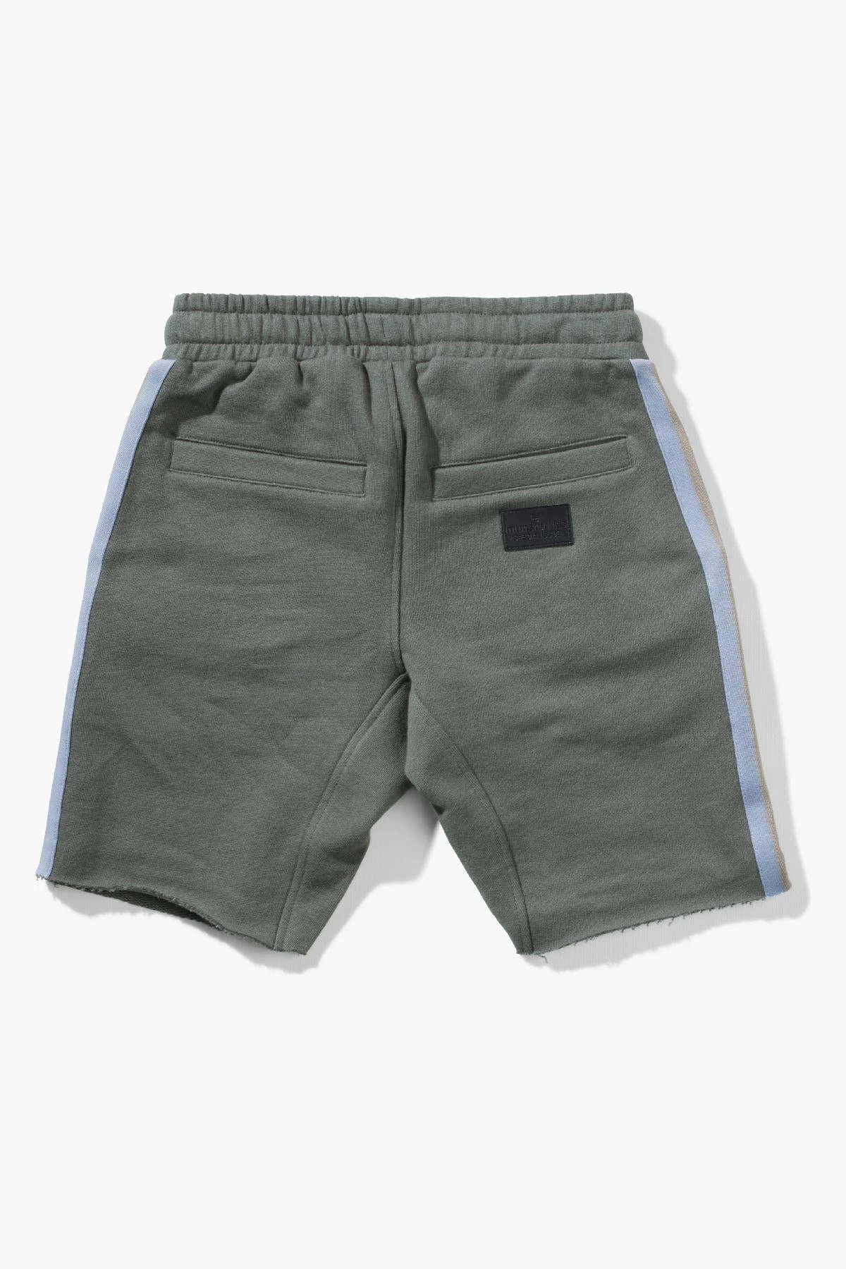 sweatpant material featuring a side stripe, both front and back pockets and an adjustable elastic waist with a drawstring waist for