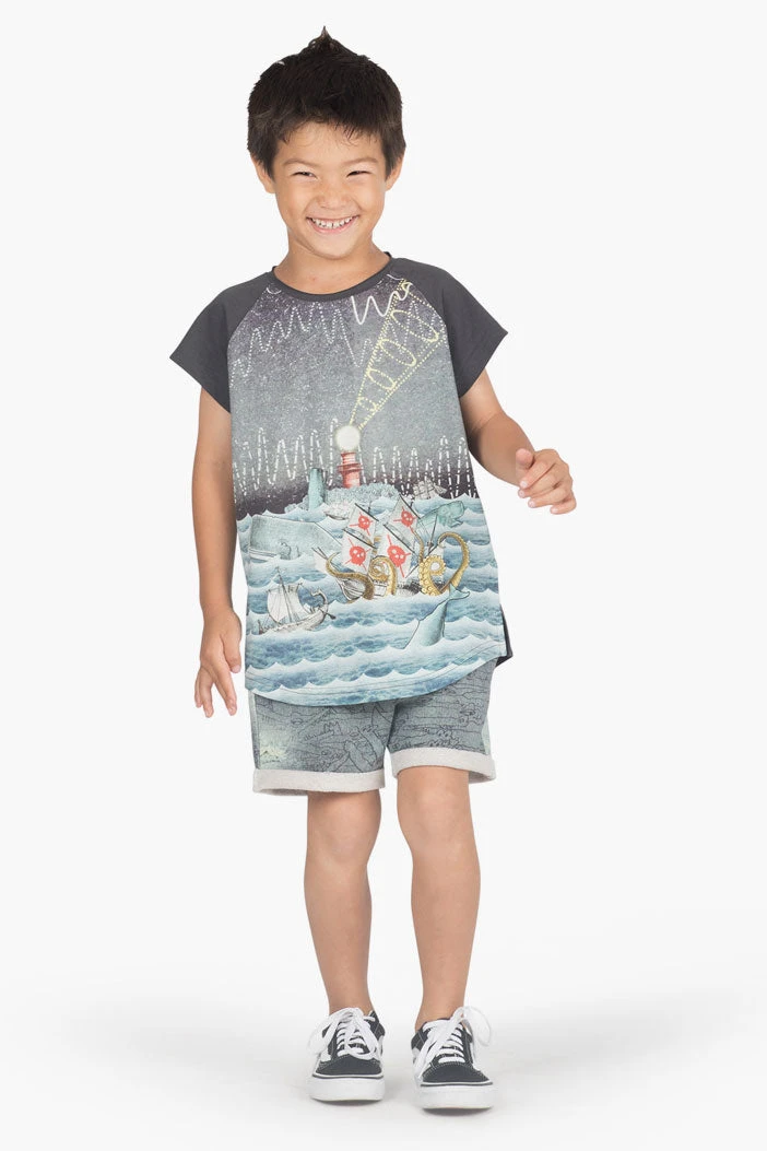 for everyday activities for your little adventurer. Features an alligator print with a drawstring waist. Made in 100% organic cotton, machine wash.
