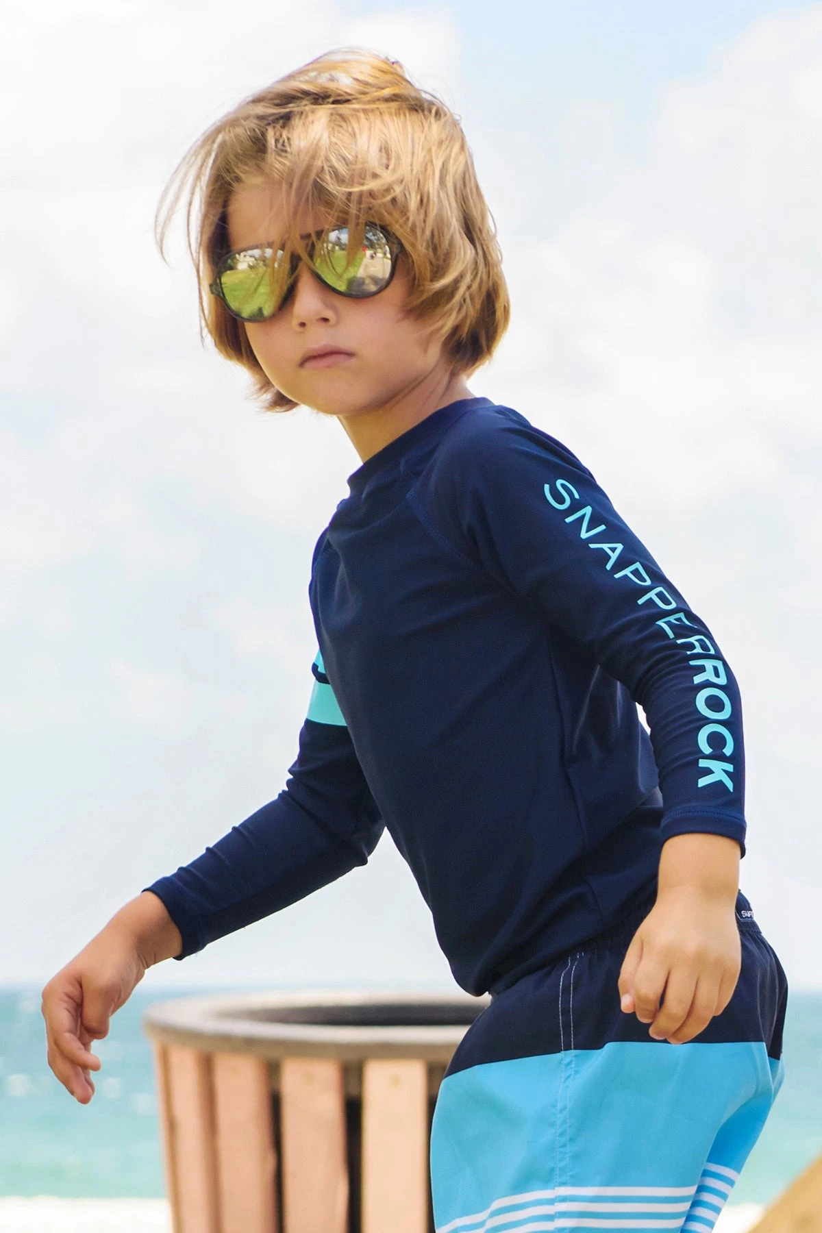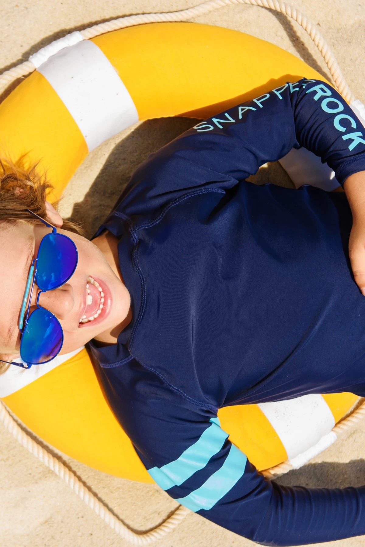 to block out 98% of all harmful UVA and UVB rays. Featuring a long-sleeve navy