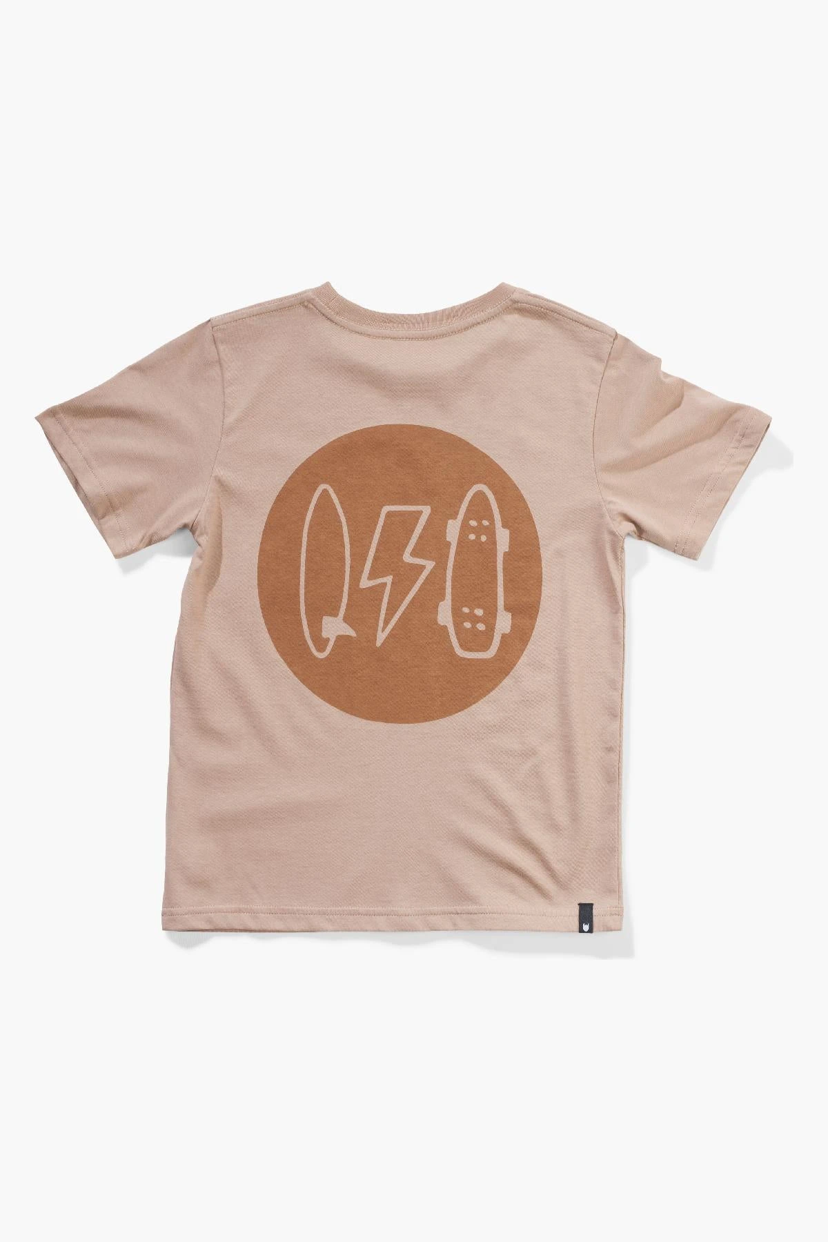 graphic prints on the back. The cool graphic includes a surfboard, lightning bolt and a skateboard for a cool look. Pair with favorite shorts to complete the look. 100% cotton, machine wash.