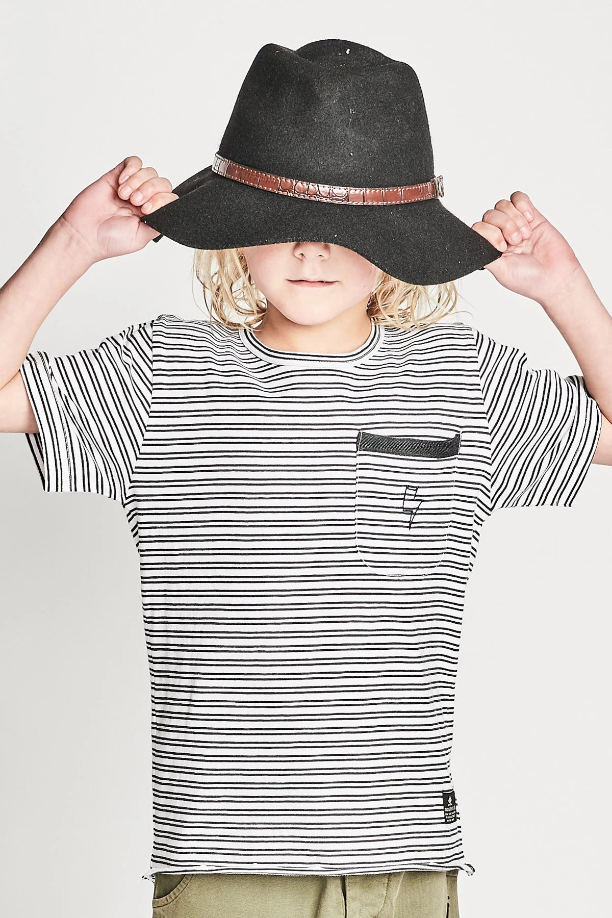 featuring horizontal stripes, a small front pocket and Munster lightning bolt. 100%
