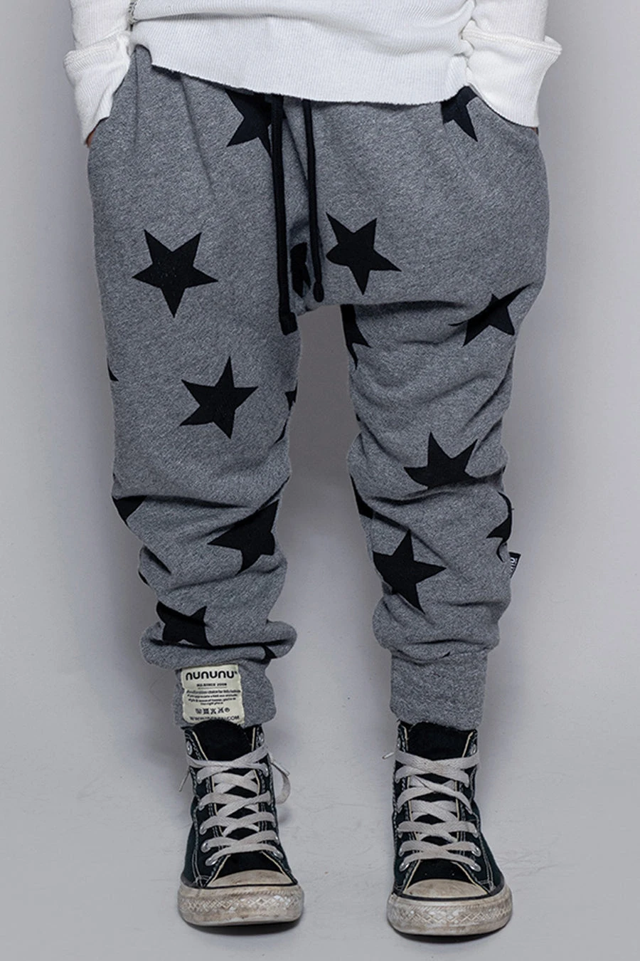 for comfort, dropped inseam, an elastic waistband for easy wear and star print detail for