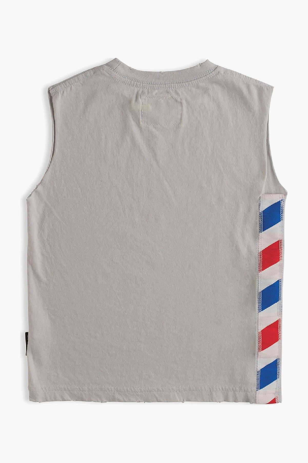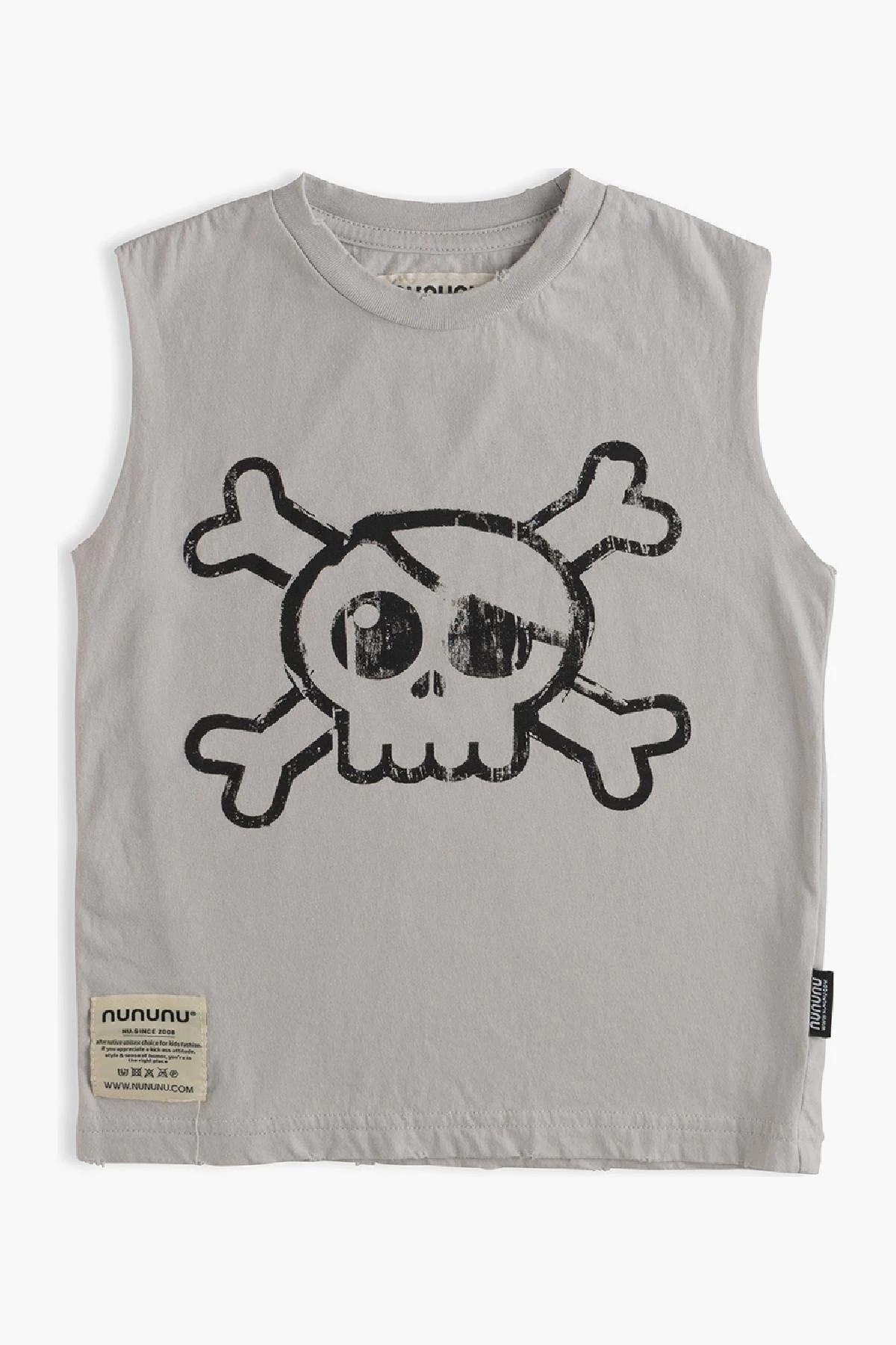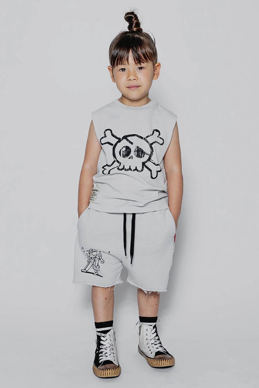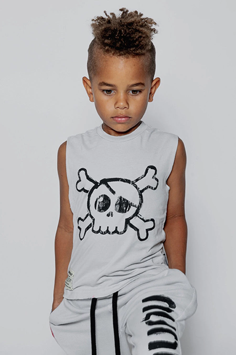 in Ice Grey which is both comfortable and stylish featuring a skull graphic on the front with a blue and red stripe on the side. Pair it with