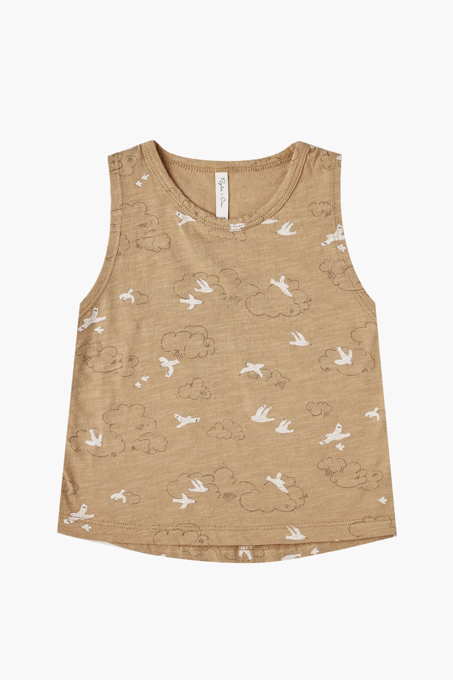 Tank is easy and versatile. Features a relaxed fit and a bird and cloud print all over. Made of 100% cotton, machine wash
