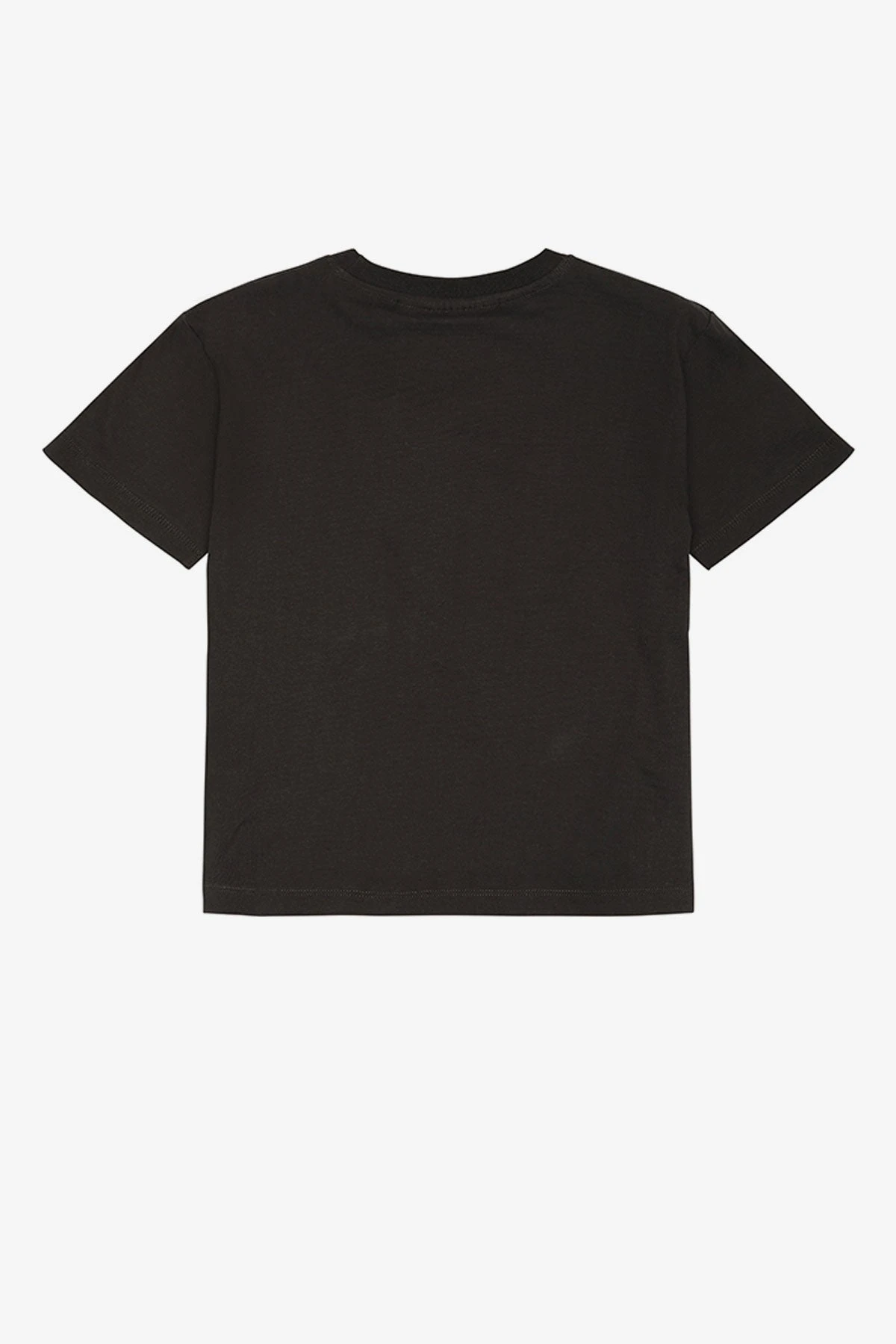 and casual look. Features a computer graphic print on the front. 100% cotton, machine wash.