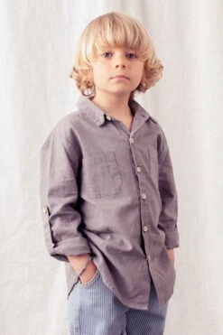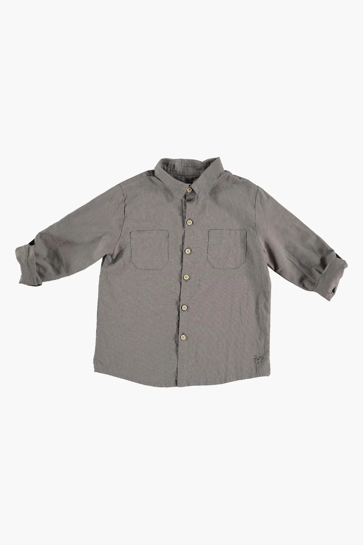 . Features two front pockets and sleeves that can be dressed up or down. 55% linen, 45% cotton, machine wash gentle.