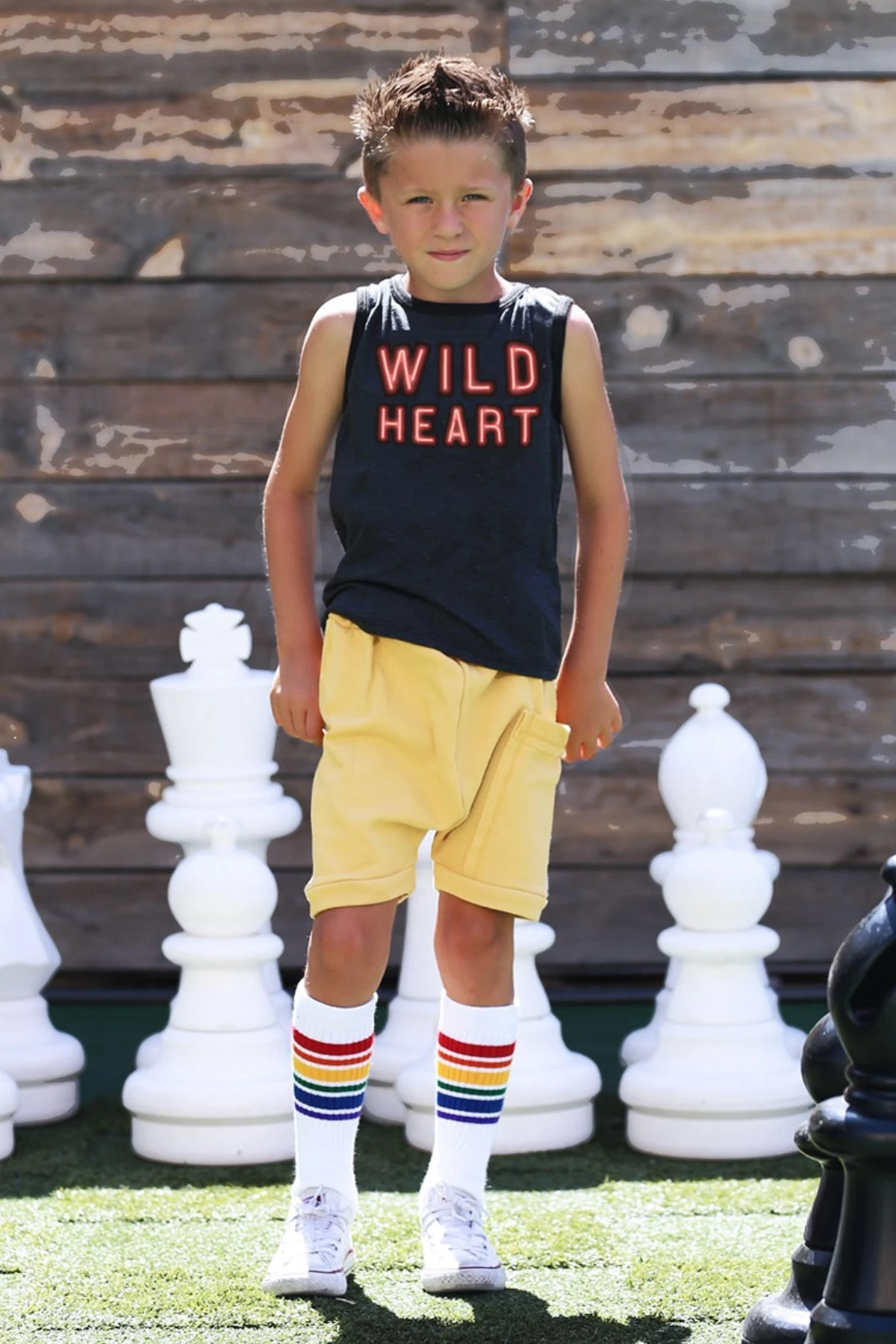 with the phrase Wild Heart on the front. Features contrasting red trim, pair with any