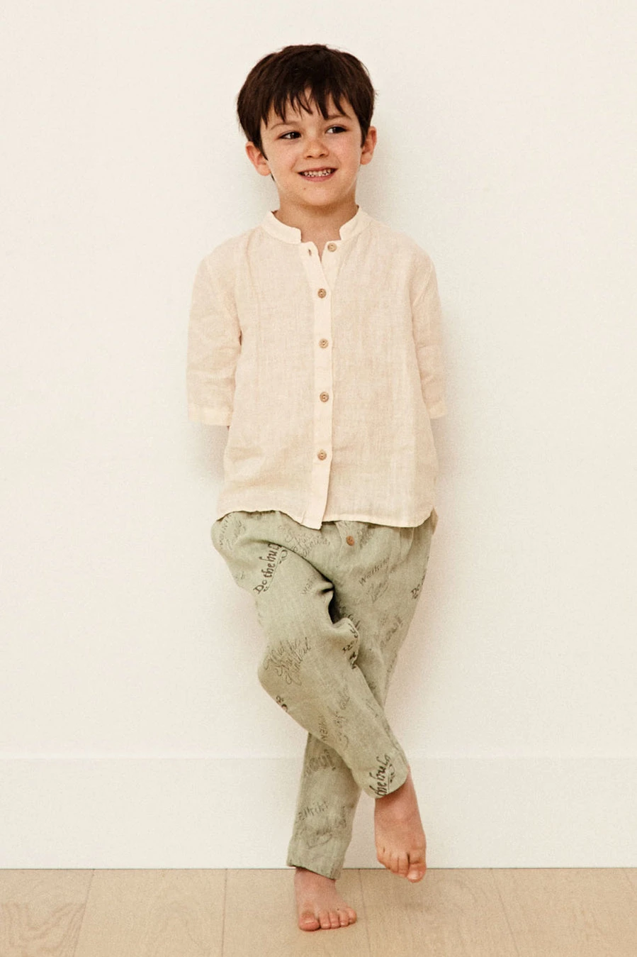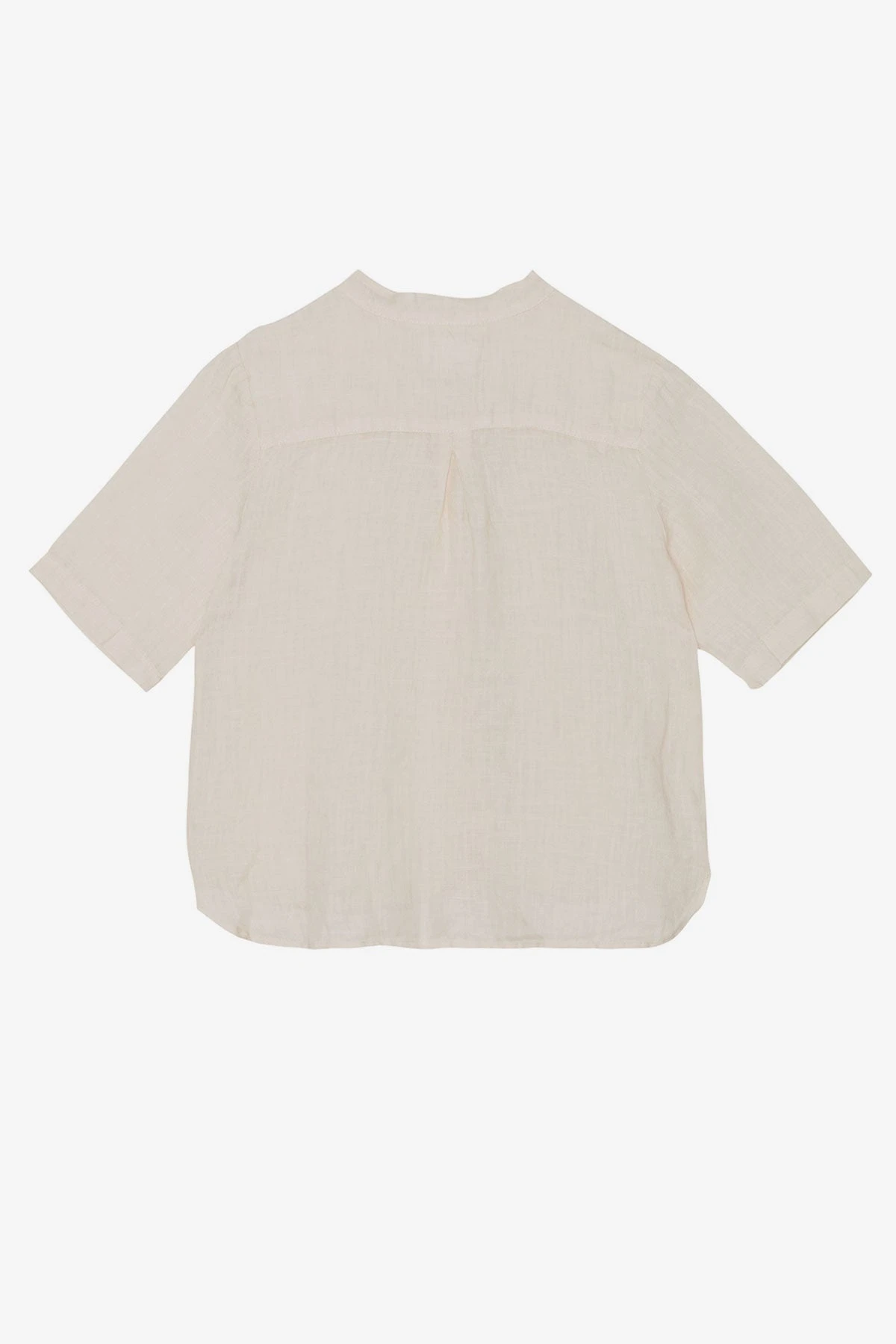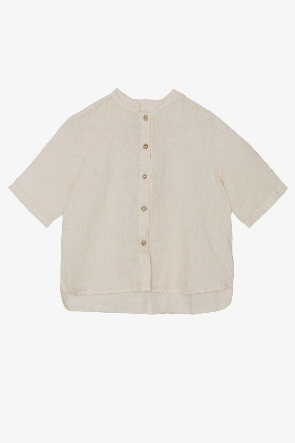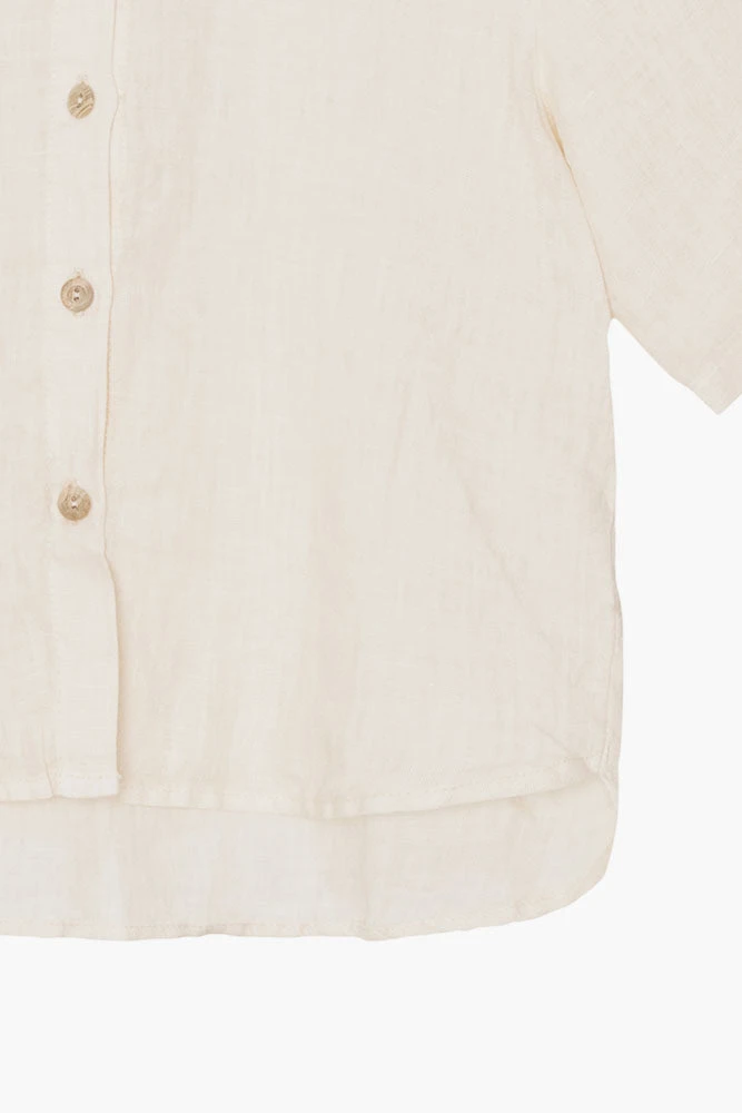 in natural is a great button front shirt option for those warm weather days. Made in 45% cotton, 55% linen, machine wash.